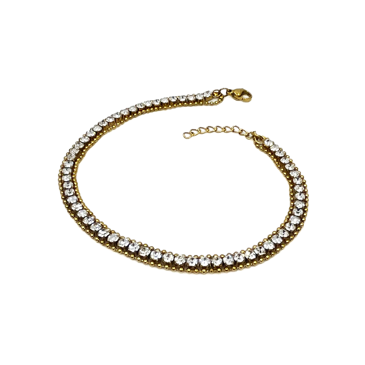 - make your ankle sparkle with this striking anklet featuring two chains and a strand of cubic zirconias