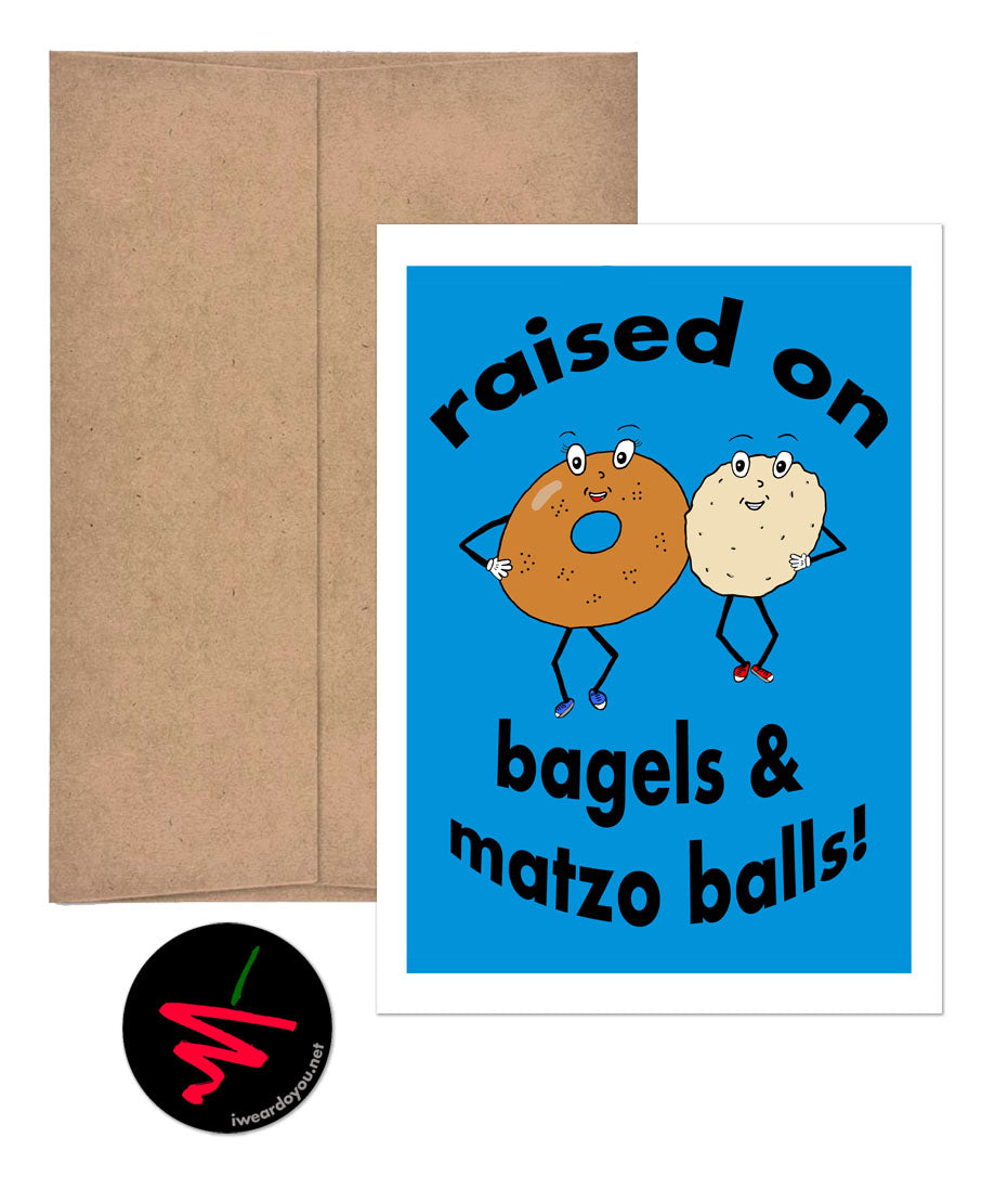 raised on bagels and matzo balls greeting card